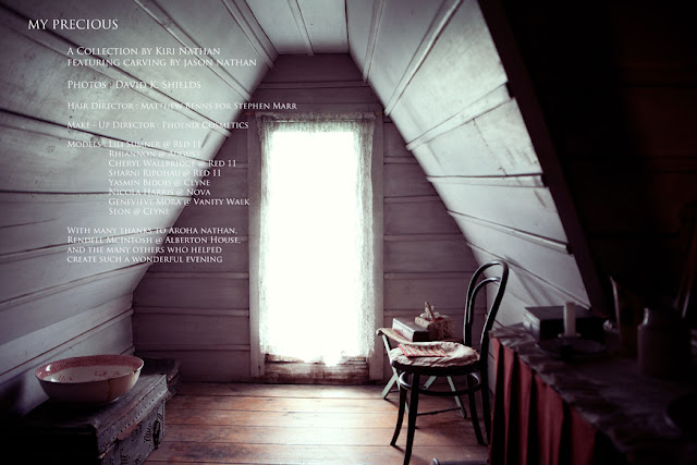 | Above and below: Lili, upstairs at Alberton House This editorial featuring Kiri Nathan's AW 2011 range 'Hiamo' was shot by David K. Shields at Alberton House in Mt Albert on the day of Kiri's launch and show in the grand old building. It was a great night and Nathan used the building itself and its entire grounds to welcome us with a piece by the Atimira Dance Company prior to a show on the steps and walkways in front of the house. Inspired by dancer Jack Gray's Te Rarawa whakapapa from Mitimiti on the west coast of the Far North, it was a haunting and beautiful piece that set the tone for Kiri's creations perfectly, and those of her partner Jason Nathan, who created the beautiful pounamu pieces worn by the models. Hair by Matthew Benns @ Stephen Marr. Make-up by Phoenix Cosmetics. Models for both the show and shoot: Lili Sumner, Cheryl Waterbridge and Sharni Ripohau @ Red 11, Yasmine Bidois and Seon @ Clyne, Nicola Harris @ Nova and Genevieve Mora @ Vanity Walk. All clothing by Kiri Nathan, shoes by Kathryn Wilson. Models in order below: Shani, Yasmin, Genevieve, Nicola, Seon, Rhianon, Cheryl, Shani, Cheryl. |